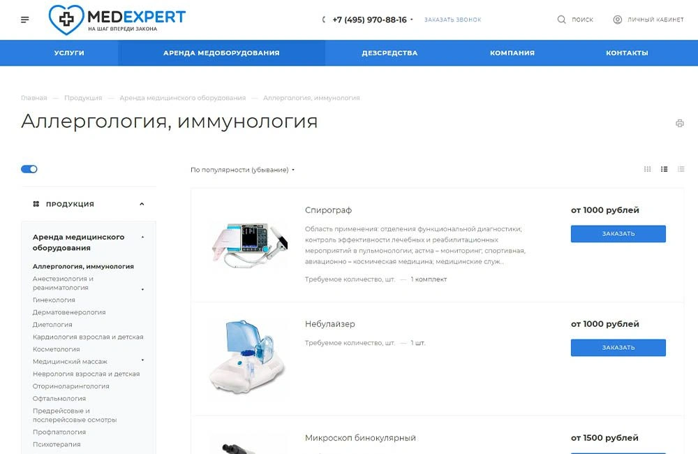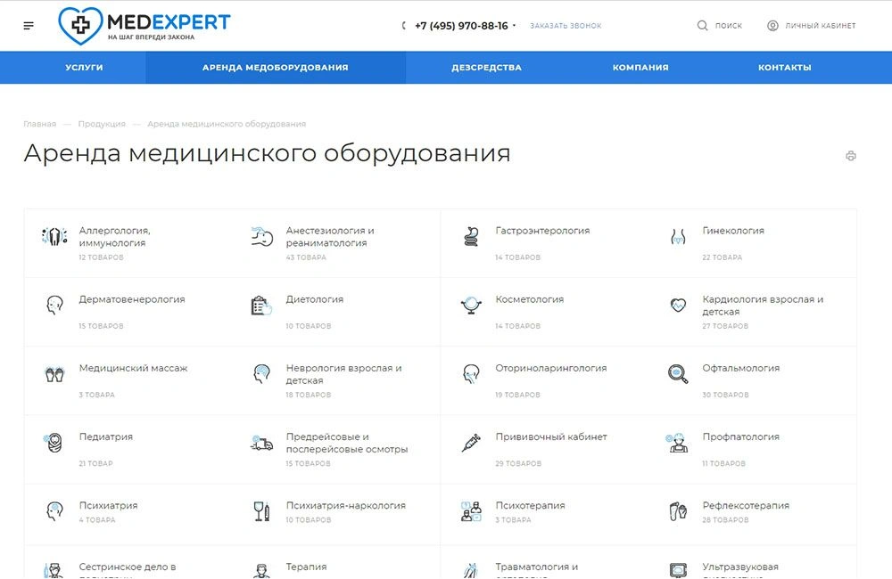 • Проанализирована ниша сайтов предоставляющих медицинское оборудование в аренду